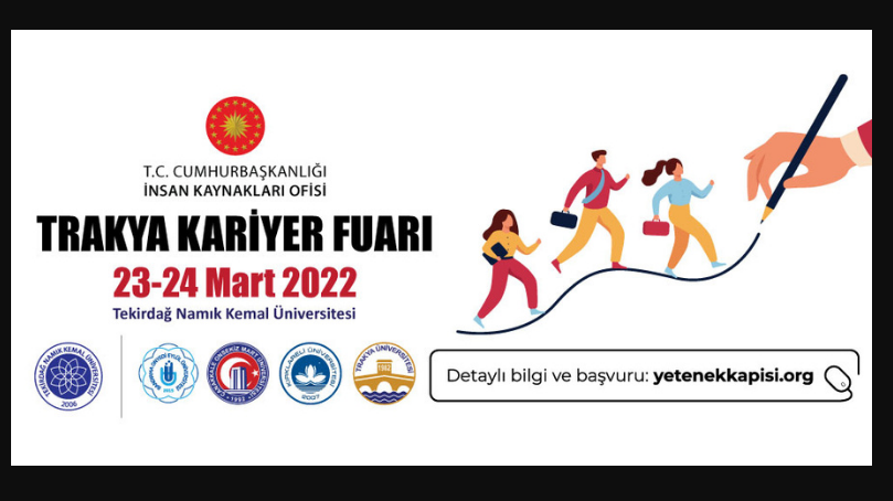 2. kez düzenlenen Trakya Bölgesel Kariyer Fuarı T.C. Cumhurbaşkanlığı İnsan Kaynakları Ofisi koordinasyonunda 23-24 Mart 2022 tarihlerinde Tekirdağ Namık Kemal Üniversitesi ev sahipliğinde gerçekleştirildi.