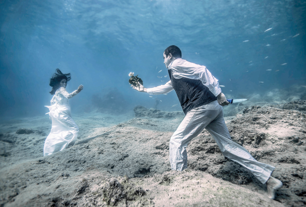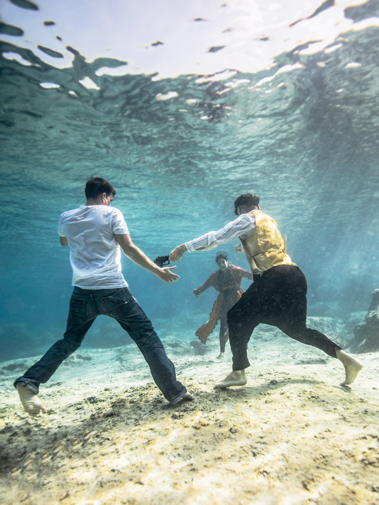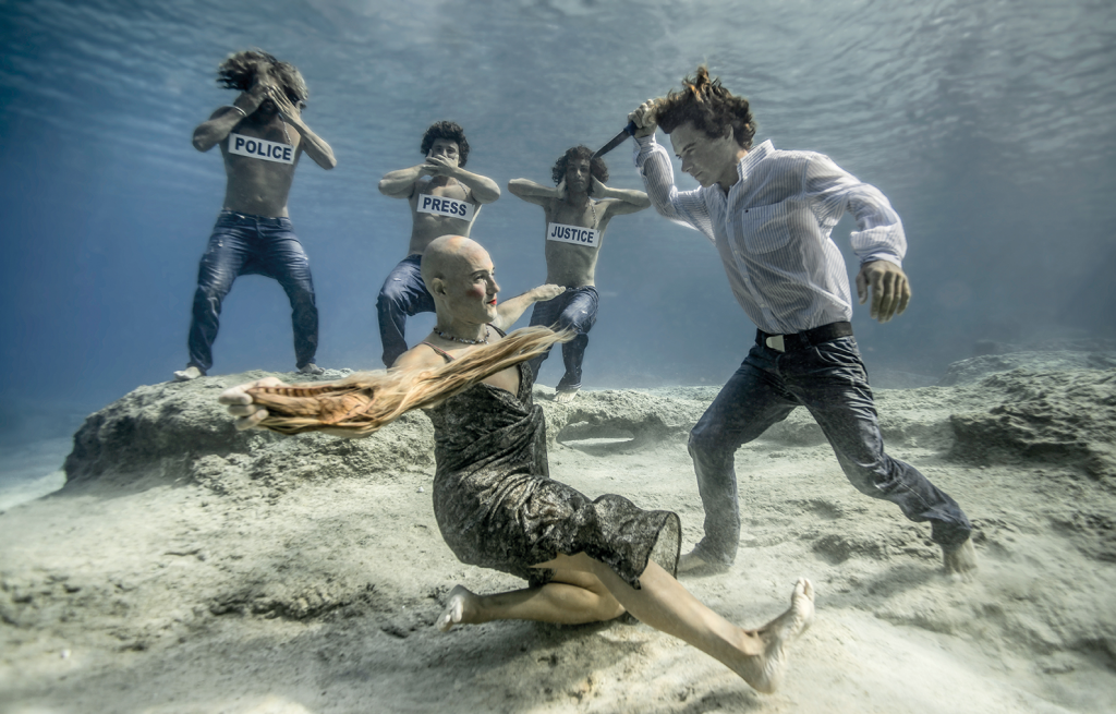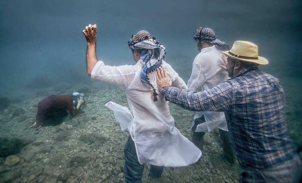 Sizi diğer sosyo-politik alanlarda çalışan fotoğraf sanatçılarından ayıran en önemli özellik çekimlerinizi suyun altında yapıyor olmanız. Neden fotoğraflarınızı suyun altında çekmeyi tercih ediyorsunuz? Sizin gibi bu şekilde sosyo-politik temaları su altında işleyen başka bir fotoğraf sanatçısı var mı?