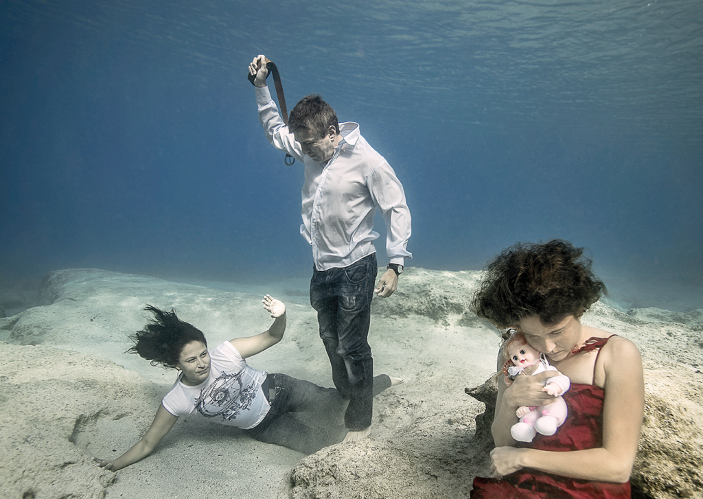 Su altında farkındalık,  kadına şiddet!